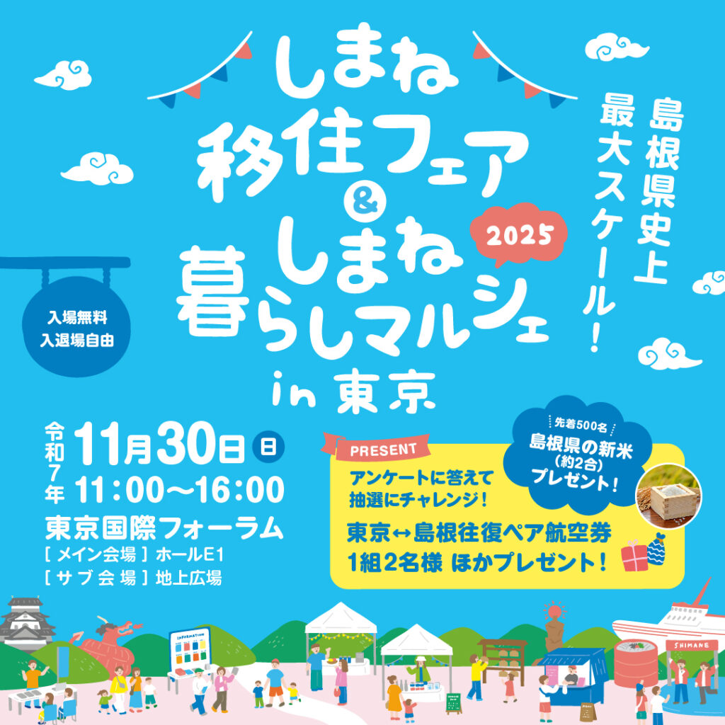 令和7年11月30日(日)に行われる「しまね移住フェア&しまね暮らしマルシェ i...続きを読む