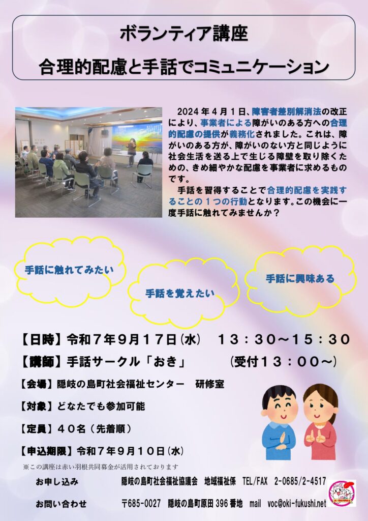 ボランティア講座を開催します!~合理的配慮と手話でコミュニケーション〔9月17日(水)〕