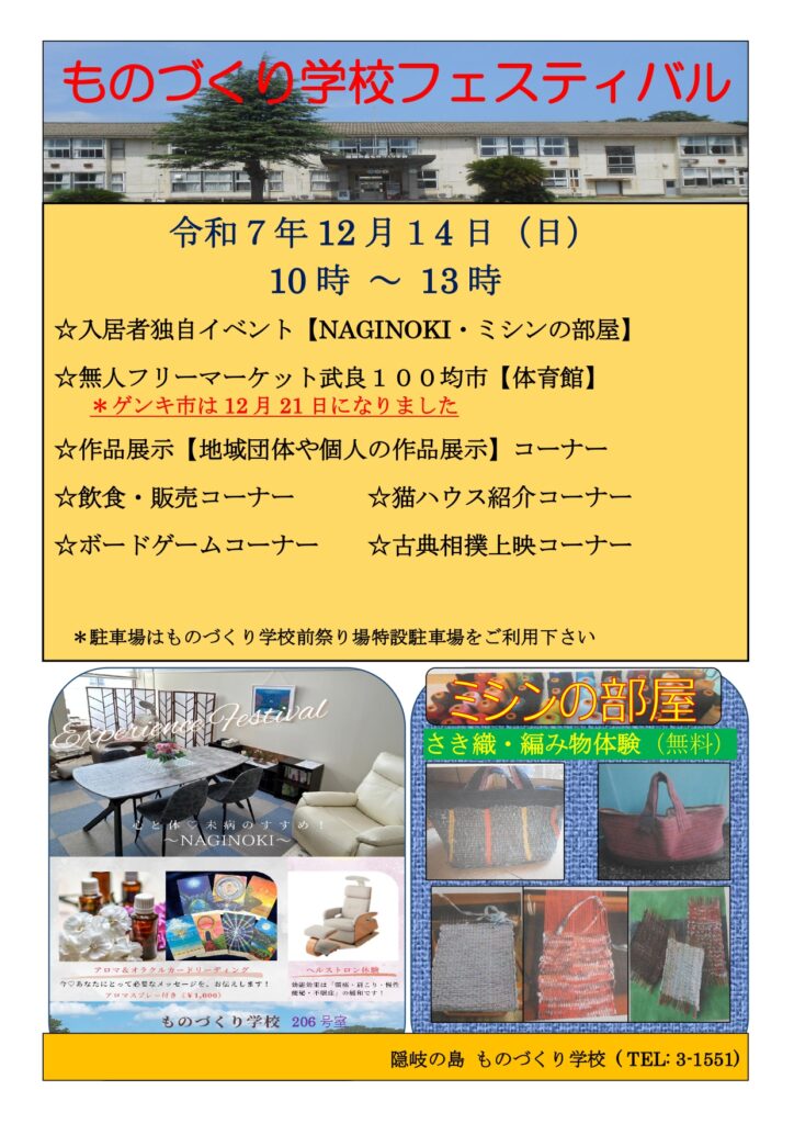 2025.12.1毎年好評を博している冬のイベント「ものづくり学校フェスティバル」が、今年は12月...続きを読む