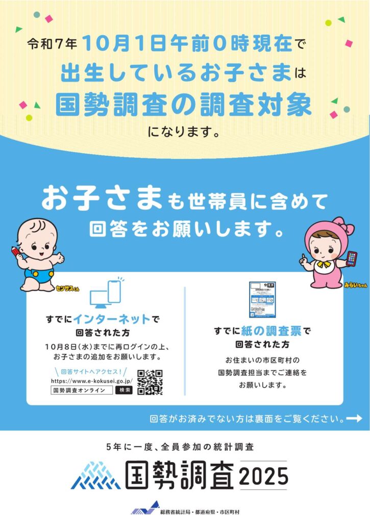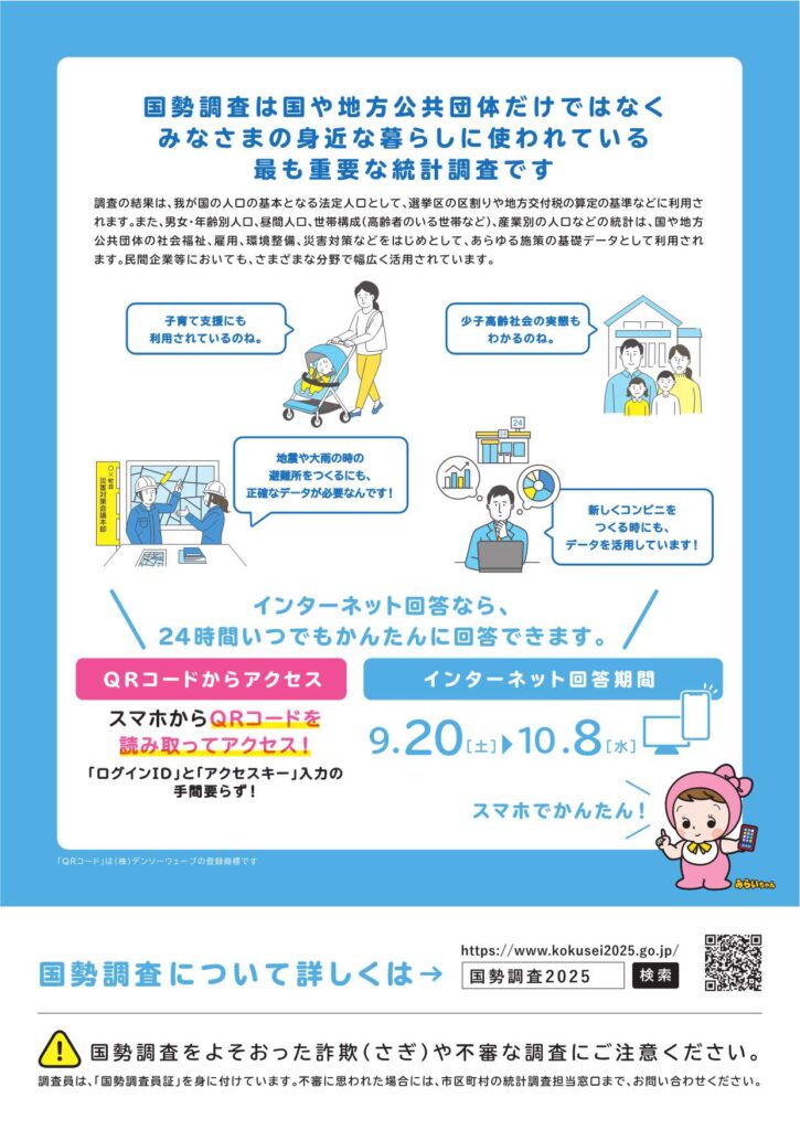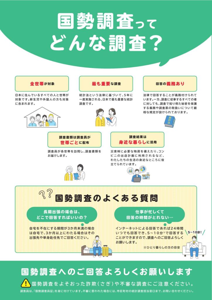 本町にお住まいの皆さん一人ひとりのご協力が、今後のまちづくりや国の施策に反映される大切な統計となります。