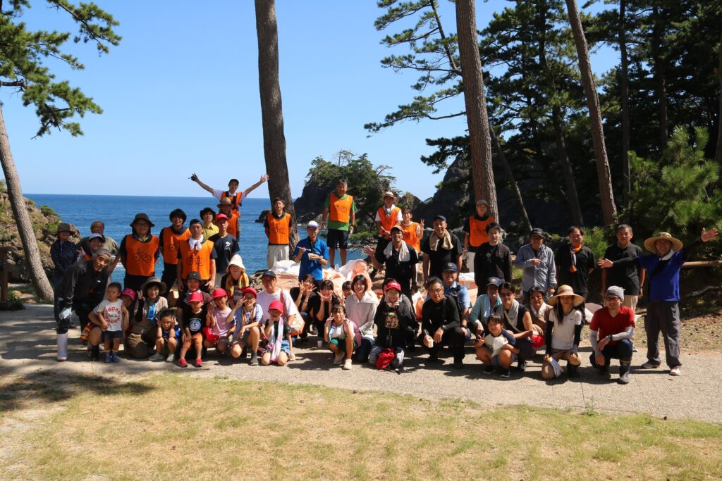 通算3回目となる今回の「エコジオプロジェクトin浄土ヶ浦」は、令和7年9月6日(土)に実施され、40人を超えるボランティアの皆さんとスタッフを合わせた約60人が浄土ヶ浦へ集結しました。