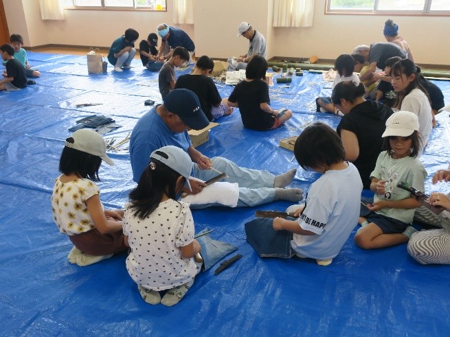 そうめんを食べる器や箸は、残った竹材をうまく加工して子どもたち自ら製作しました。