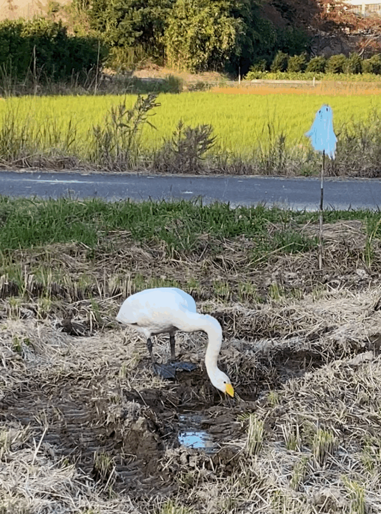 農家さんたち曰く、都万でオオハクチョウを目撃するのは初めてのことだそうです。