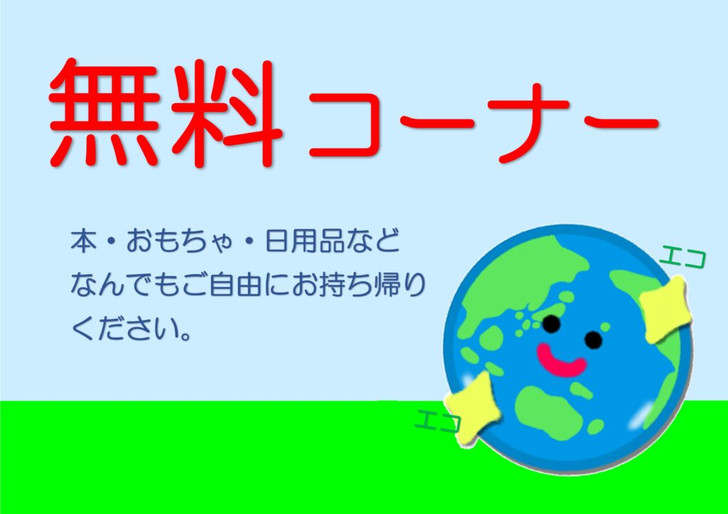 本・おもちゃ・日用品など、コーナーに置いてあるものは何でも無料でお持ち帰りいただけます。