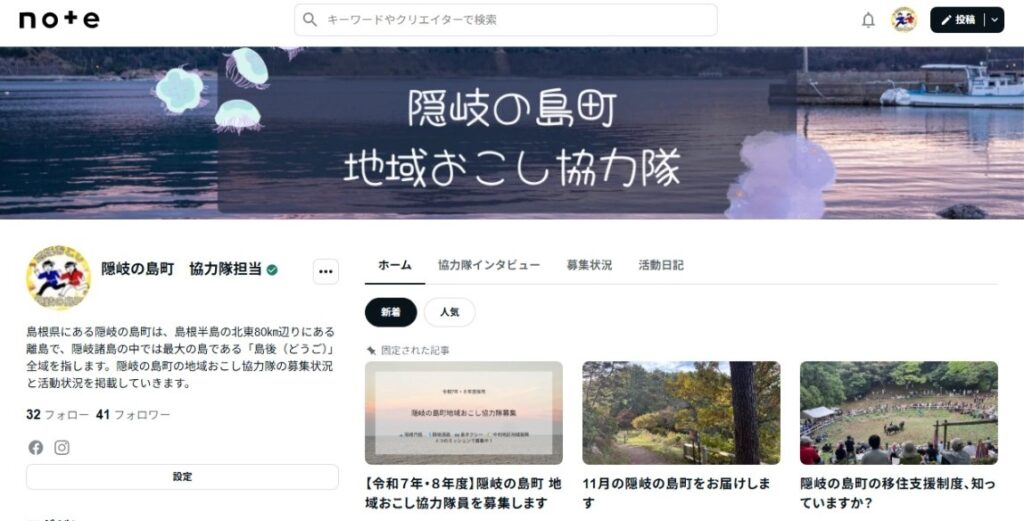 隠岐の島町では、地域おこし協力隊や集落支援員が町の魅力を発信する取り組みを進めており、その中心として活動しているのがこのnoteです。