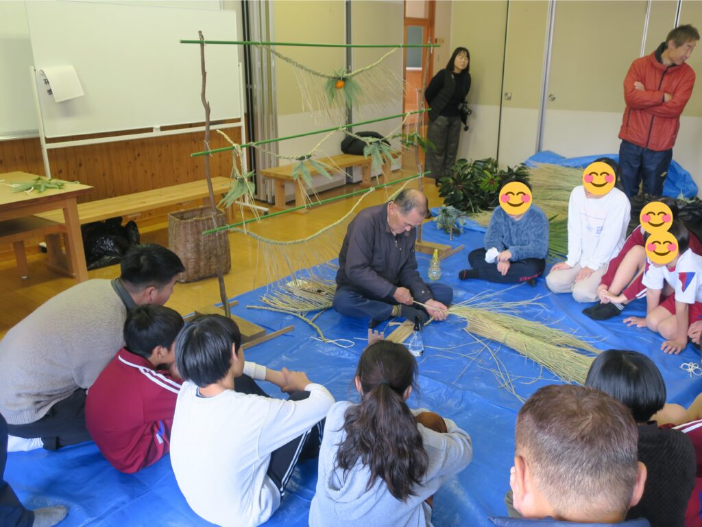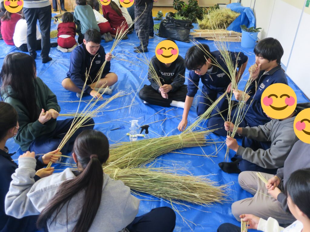12月22日、都万小学校の5・6年生と、都万中学校1~3年生を対象に、しめ飾り作り体験が都万中学校で行われました。