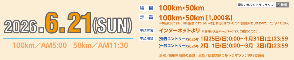 令和8年6月21日(日)に開催する 第19回隠岐の島ウルトラマラソンについて、