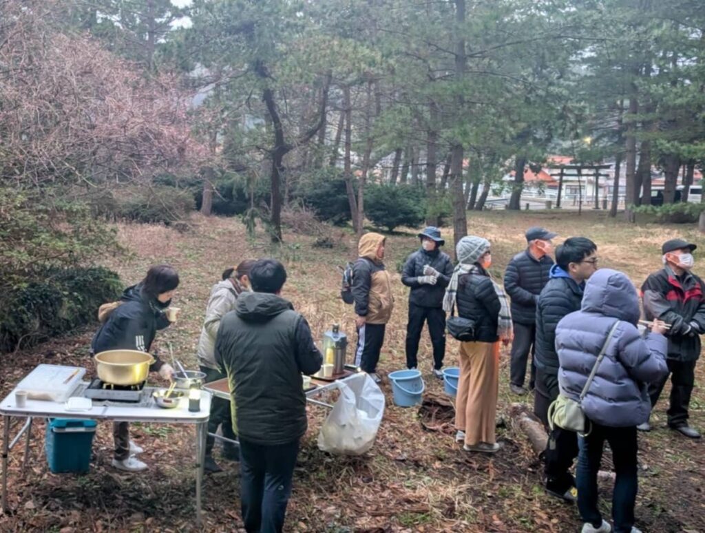 焚火や温かいうどんのふるまいもあります。