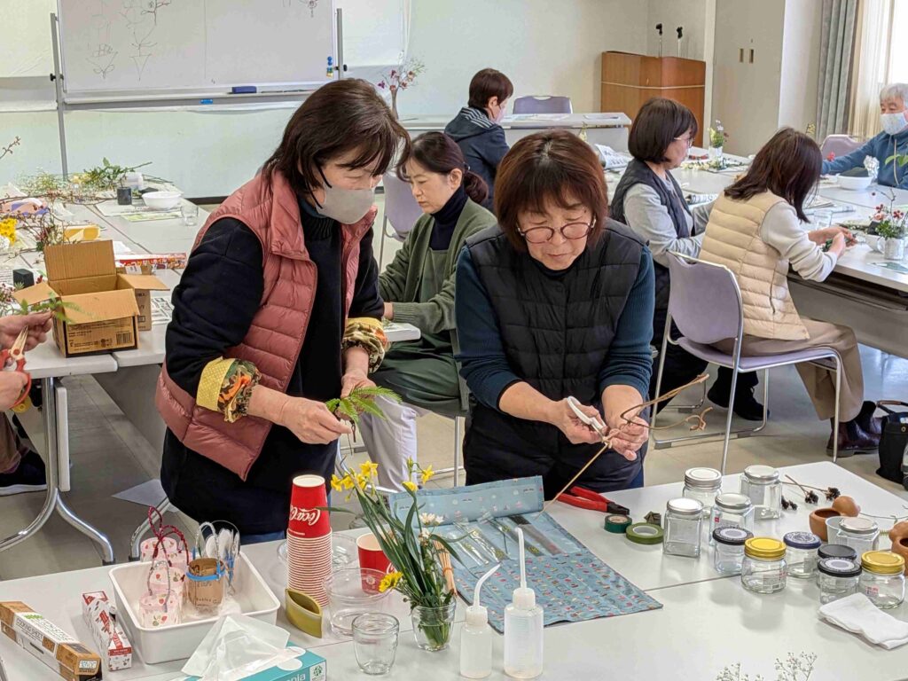 3月17日(火)に五箇生涯学習センターで「玄関に春を生けてみよう」を開催し、11名の方が参加されました。