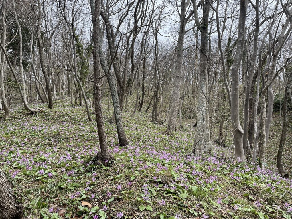 ※カタクリの群生地は斜面に広がっています。足元が少し不安定なところもあるので、歩きやすい靴でお越しいただくのがおすすめです。ゆっくり気をつけて散策してください😊