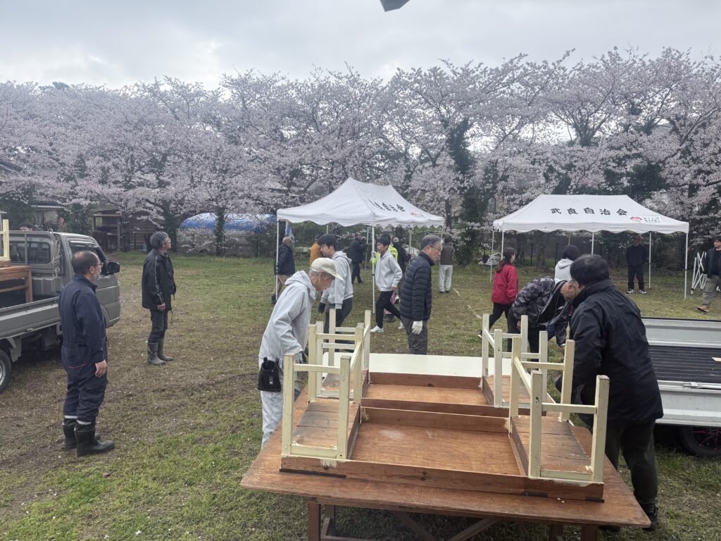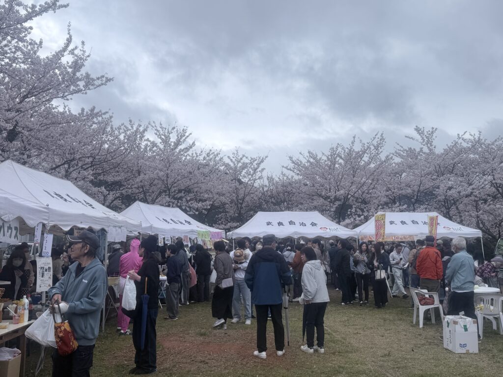 さっそく4月5日(日)の「武良桜祭り」に参加しました。会場にはたくさんの屋台が並び、どこからもいい香りが。