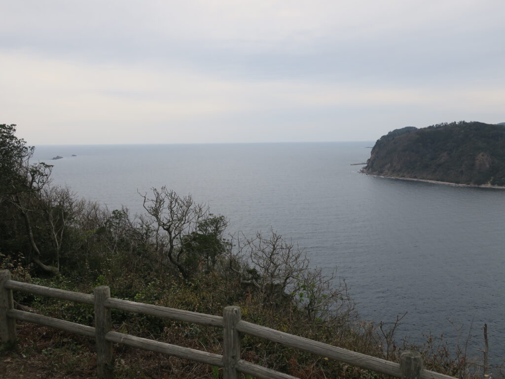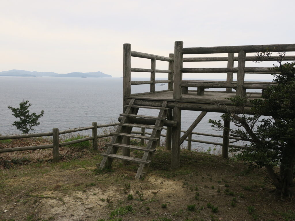 たくさんの木々に囲まれた道の先には、日本海を一望できる展望台が待っています。